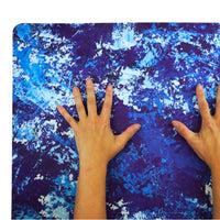 Kati Kaia Melete Blue touring yoga mat with vibrant abstract blue and green nature-inspired design
