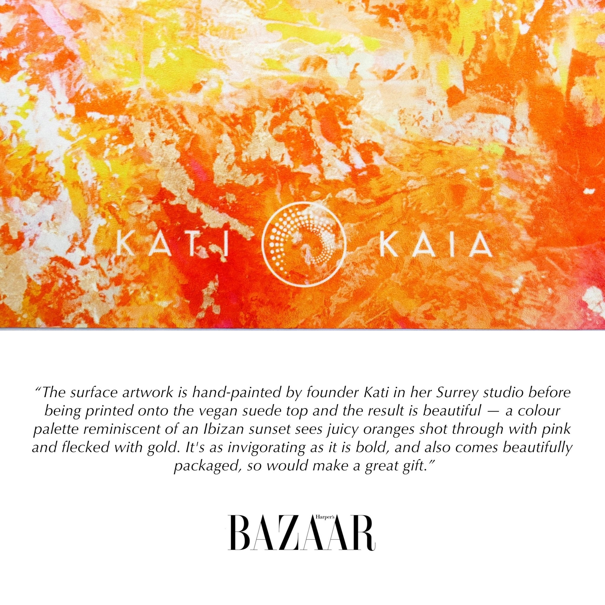Kati Kaia artist luxury yoga mat bundle in orange and black, made from eco-friendly material, versatile for all yoga styles