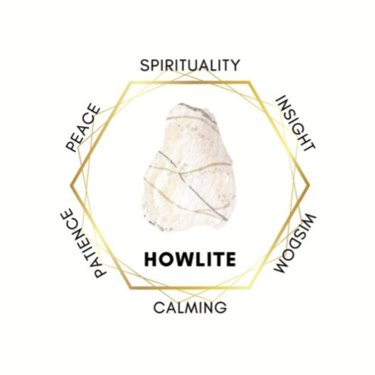 Howlite, a beautiful light marbled stone is associated with inner calm, stress release, and calming an over-active mind. Howlite benefits the third eye and crown chakra to assist your meditation, often worn as a reminder of patience and peace.